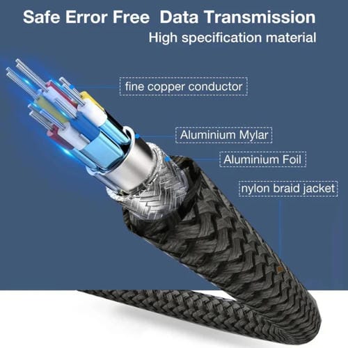 • Ancho de Banda de hasta 32,4 Gbps, admite HDR dinámico, sincronización vertical GSync y FreeSync, Conectores chapados en oro, diámetro Exterior de 6,3 mm con malla de nailon resistente