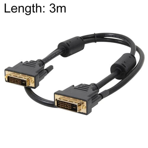 El Cable DVI 24+1P Macho a DVI 24+1P Macho con una longitud de 3 metros es un componente diseñado para la transmisión de Señales Digitales de video de alta calidad. Este Cable DVI-D de doble enlace es compatible con dispositivos que utilizan conexiones DVI, especialmente monitores de Pantalla plana y equipos de alta definición. Su función principal es garantizar una Conexión estable y eficiente entre la fuente de video y el dispositivo de visualización, permitiendo la transferencia de imágenes con alta resolución. Es adecuado para usuarios que requieren conexiones fiables en entornos profesionales o domésticos, y es compatible con PC que dispongan de Puertos DVI.