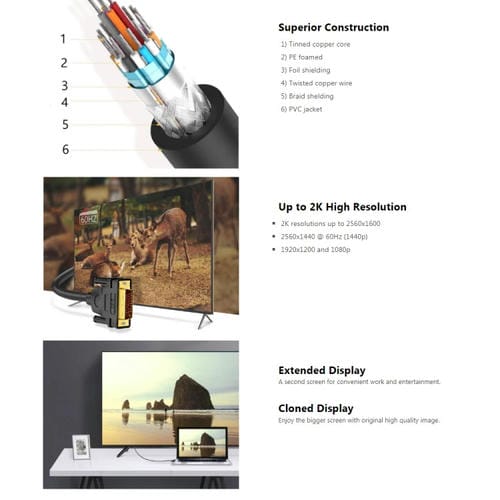- Longitud de 3 metros; admite Conexión en caliente para dispositivos de visualización DVI