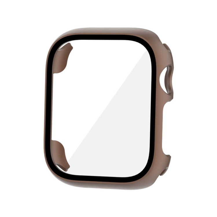 Caja de Reloj de PC con Película de Vidrio Templado para Apple Watch Series 9/8/7 41mm (Marrón)