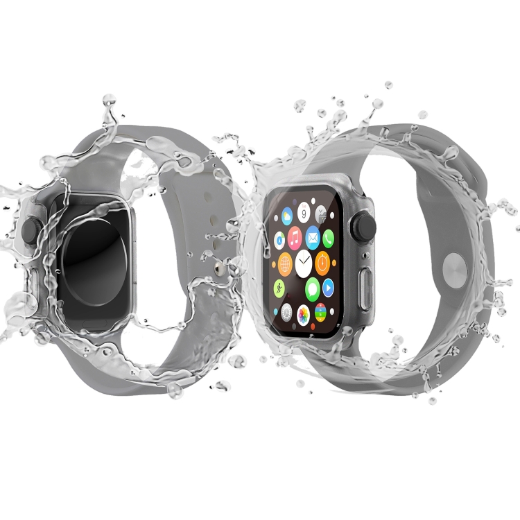 Caja de Reloj con Película Templada y PC a Prueba de Agua para Apple Watch Series 8/7 41mm (Transparente Esmerilado)