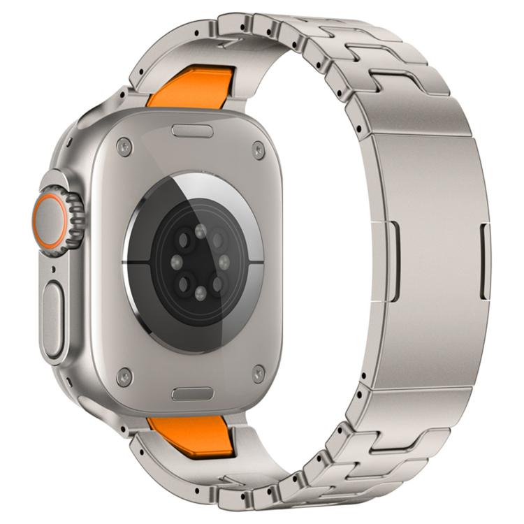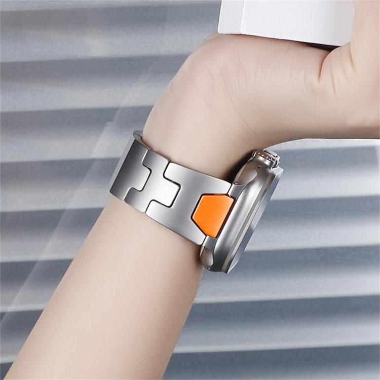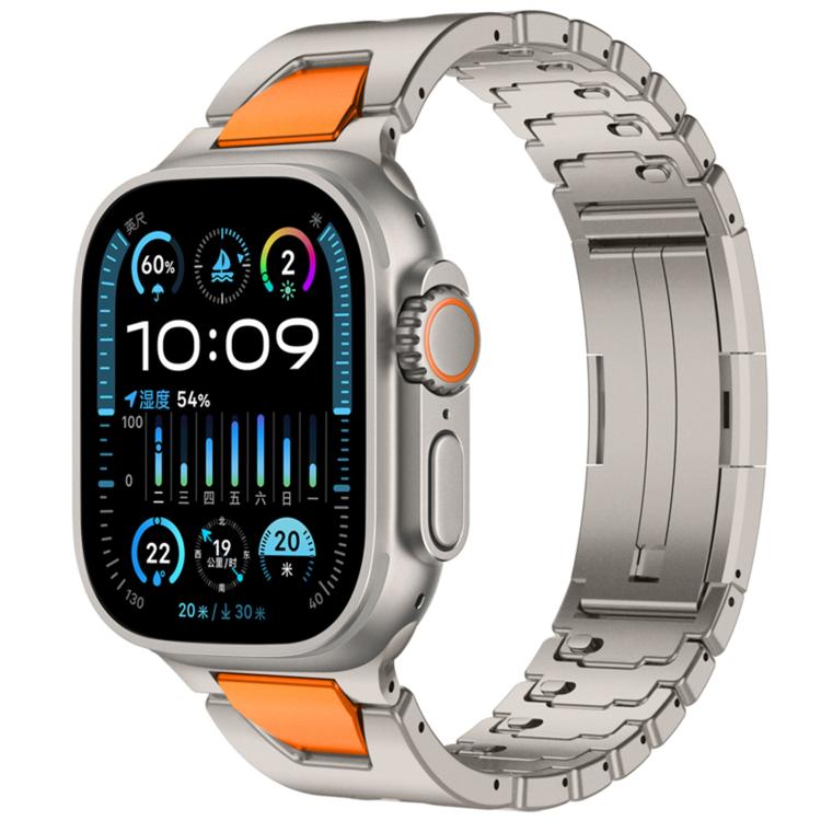 Correa de acero inoxidable con hebilla de mariposa y liberación rápida tipo H para Apple Watch de 44 mm, 45 mm, 46 mm y 49 mm (naranja titanio)