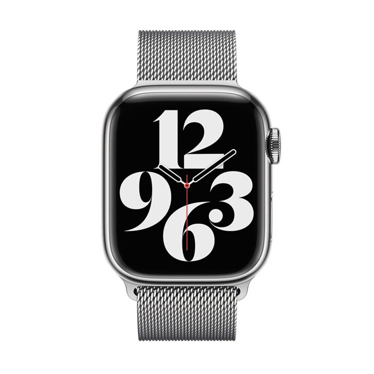 Correa de acero inoxidable milanesa con película curva 3D para Apple Watch Series 45 mm (plateada)