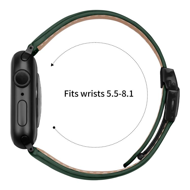 Correa de cuero con hebilla trasera de tortuga negra y textura de lichi para Apple Watch de 42 mm, 41 mm, 40 mm y 38 mm (verde)