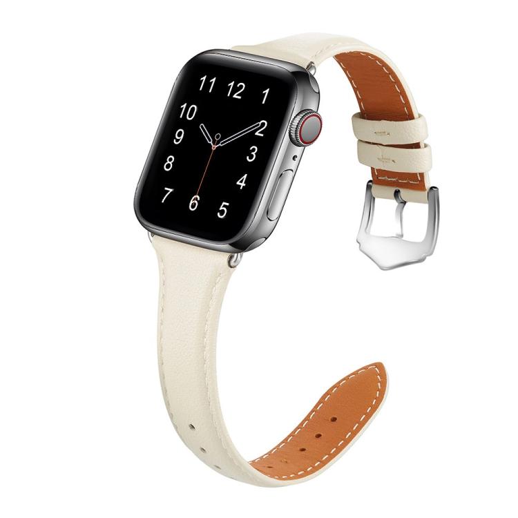 Correa de cuero genuino con hebilla pequeña para Apple Watch de 46 mm, 49 mm, 45 mm y 44 mm (blanco marfil)