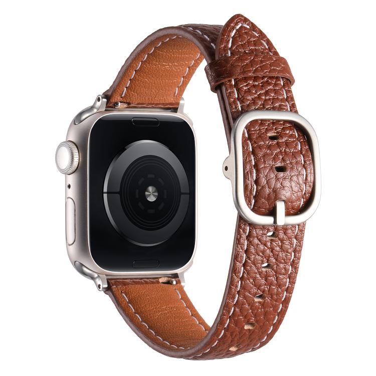 Correa de cuero genuino con textura de lichi y hebilla cuadrada para Apple Watch de 42 mm, 41 mm, 40 mm y 38 mm (marrón)