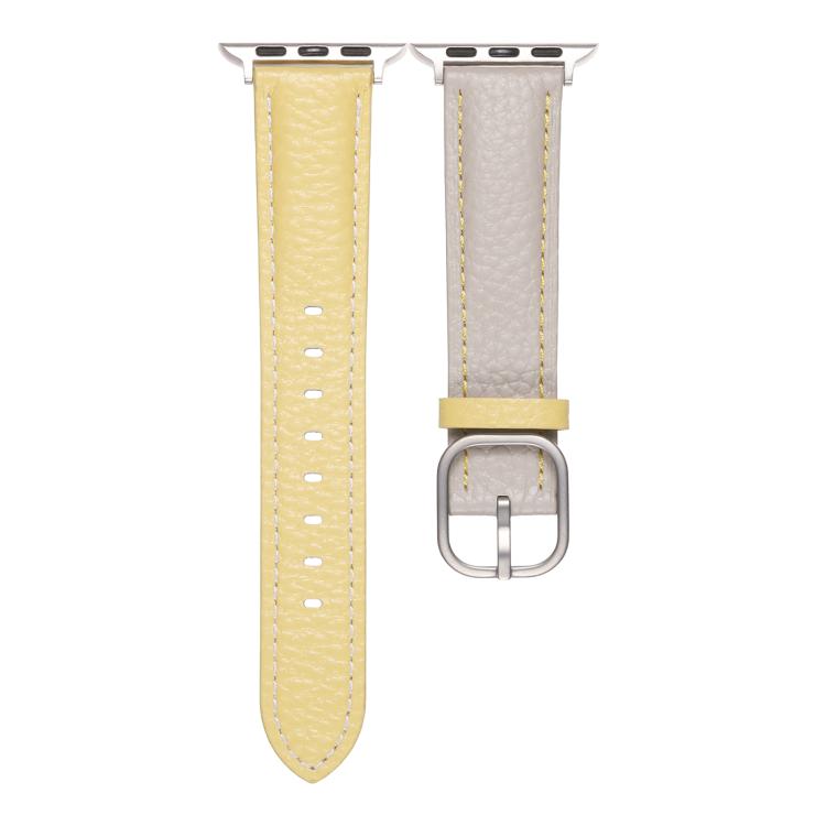 Correa de cuero genuino con textura de lichi y hebilla cuadrada para Apple Watch de 46 mm, 49 mm, 45 mm y 44 mm (gris trinchera y amarillo)