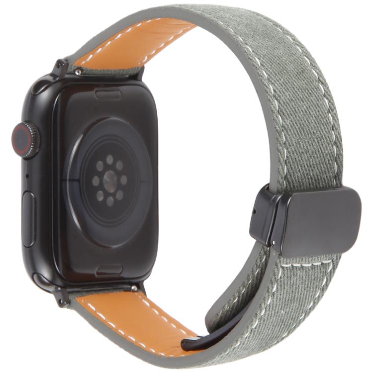 Correa de cuero vaquero con hebilla magnética plegable para Apple Watch de 46 mm, 49 mm, 45 mm y 44 mm (azul retro)