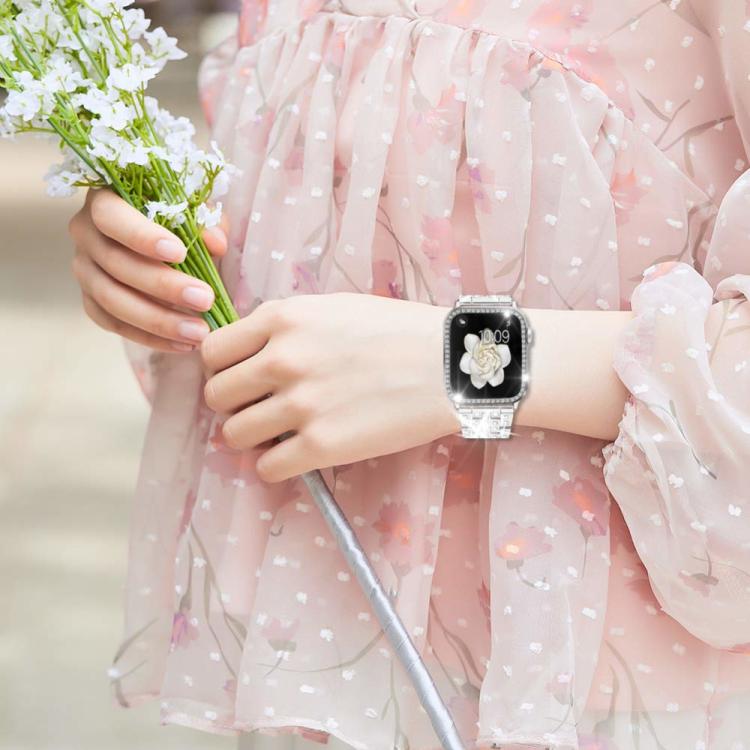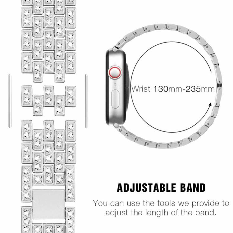 Correa de metal con diamantes brillantes y estuche para Apple Watch Series 42 mm xDfind (plateada)