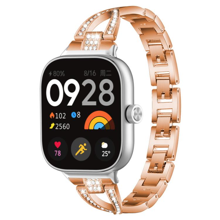 Correa de metal con diamantes de una sola fila en forma de X para Xiaomi Smart Band 9 Pro/8 Pro/Redmi Watch 5/4 xDfind (oro rosa)