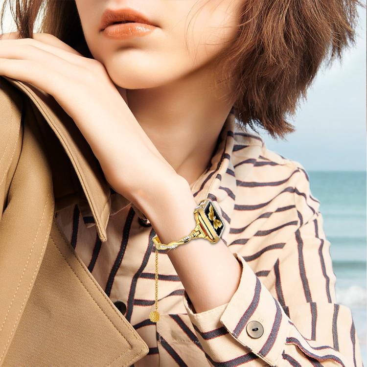 Correa de metal con diamantes y pulsera giratoria xDfind para Apple Watch de 38, 40, 41 y S10 de 42 mm (dorada)
