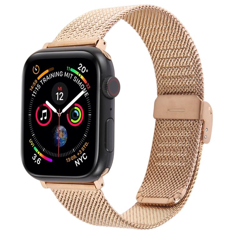 Correa de metal milanesa gruesa con relieve y hebilla integrada para Apple Watch de 46 mm, 49 mm, 45 mm y 44 mm (oro rosa)