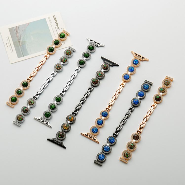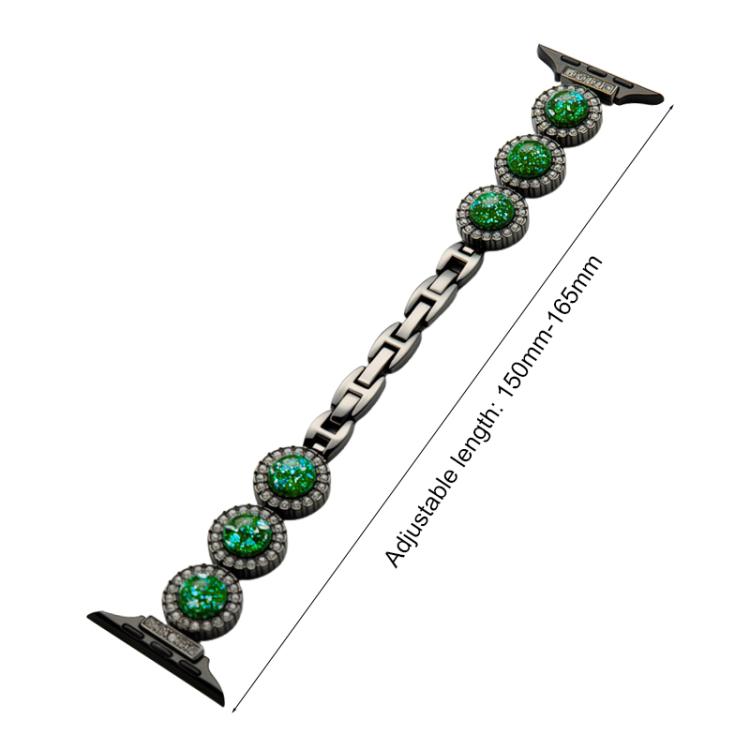 Correa de metal para Apple Watch de 38/40/41/S11 de 42 mm xDfind con diamantes brillantes (diamante negro y verde)