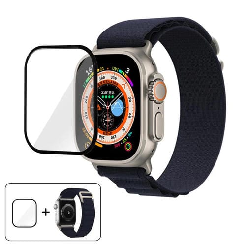 Correa de nailon con hebilla y película curva 3D para Apple Watch Ultra 2/1 de 49 mm (azul medianoche)