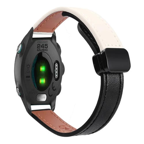 Correa de Reloj Cuero Microfibra 20mm con Hebilla Magnética para Garmin Forerunner 245 (Negro y Albaricoque)