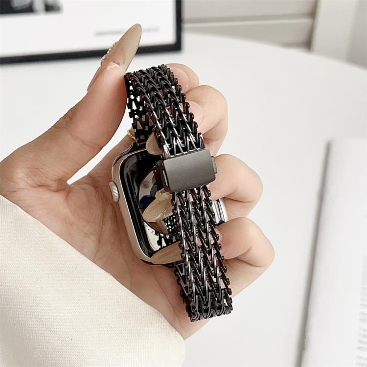 Correa de reloj de malla metálica de acero delgada con cierre magnético para Apple Watch de 46 mm / 49 mm / 45 mm / 44 mm (negra)