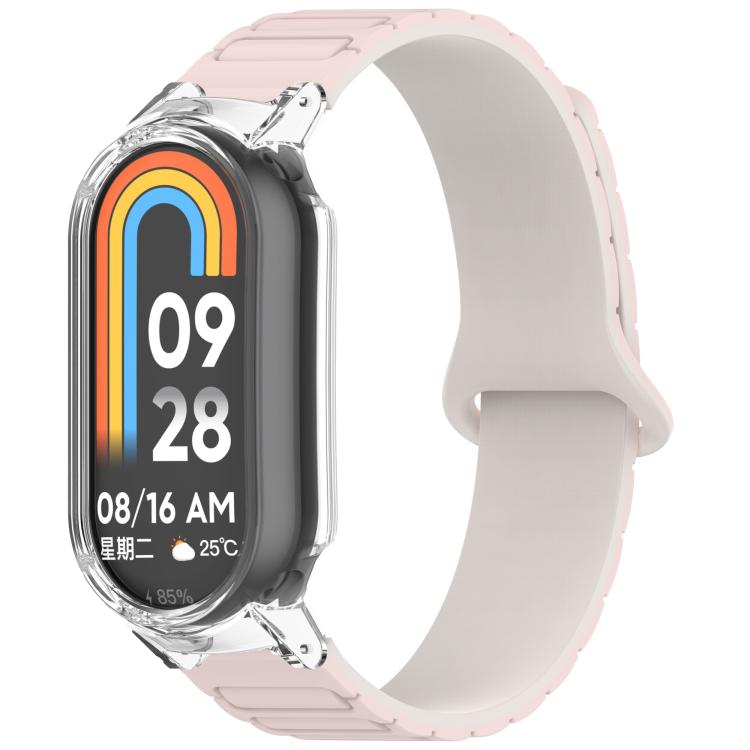 Correa de reloj de silicona magnética en forma de I para Xiaomi Smart Band 9/9 NFC PC Watch Frame (luz de estrella rosa + transparente)