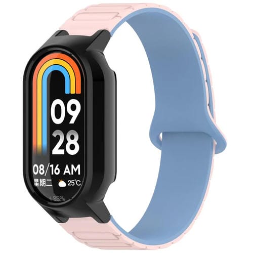 Correa de reloj de silicona magnética en forma de I para Xiaomi Smart Band 9/9 NFC PC Watch Frame (rosa, azul y negro)