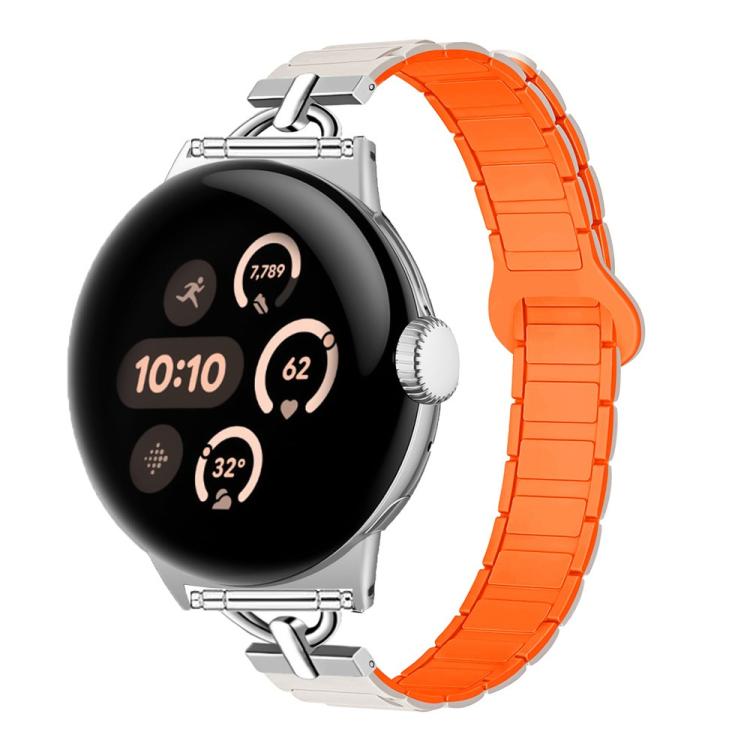 Correa de reloj magnética de silicona con tres cuentas en forma de D de 41 mm para Google Pixel Watch 4 / 3 / 2 / 1 (naranja estelar)