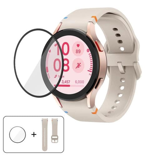 Correa de silicona con costuras lisas y película curva 3D para Samsung Galaxy Watch6 de 44 mm (Starlight)