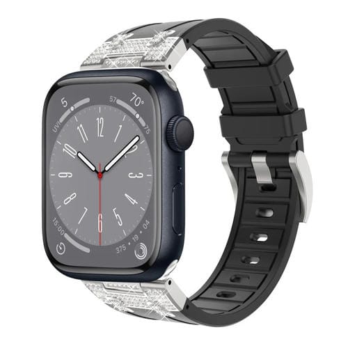 Correa de Silicona Apple Watch Series 8 45mm Diseño Cielo Estrellado Diamantes (Negra)