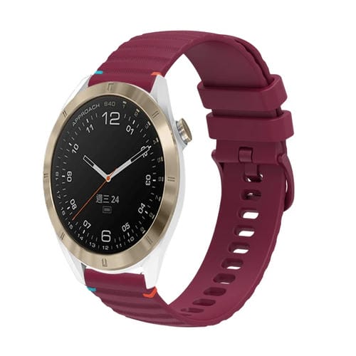 Correa de Silicona con Puntadas Onduladas y Puntos para Reloj Garmin Approach S40 20mm (Rojo Vino)