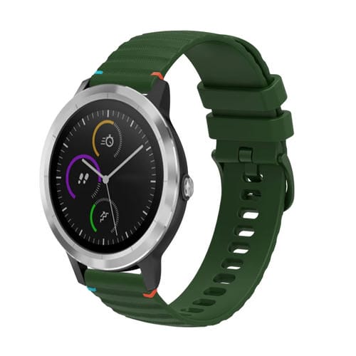 Correa de Silicona Garmin Vivoactive 3 20mm con Puntadas Onduladas y Puntos (Verde Militar)