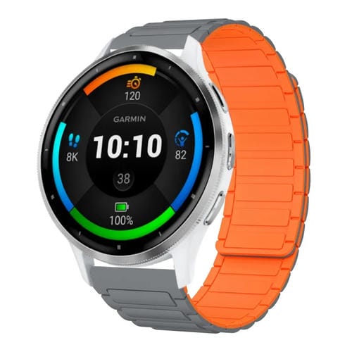 Correa de Silicona Magnética en Forma de I para Reloj Garmin Venu 3 22mm (Gris y Naranja)