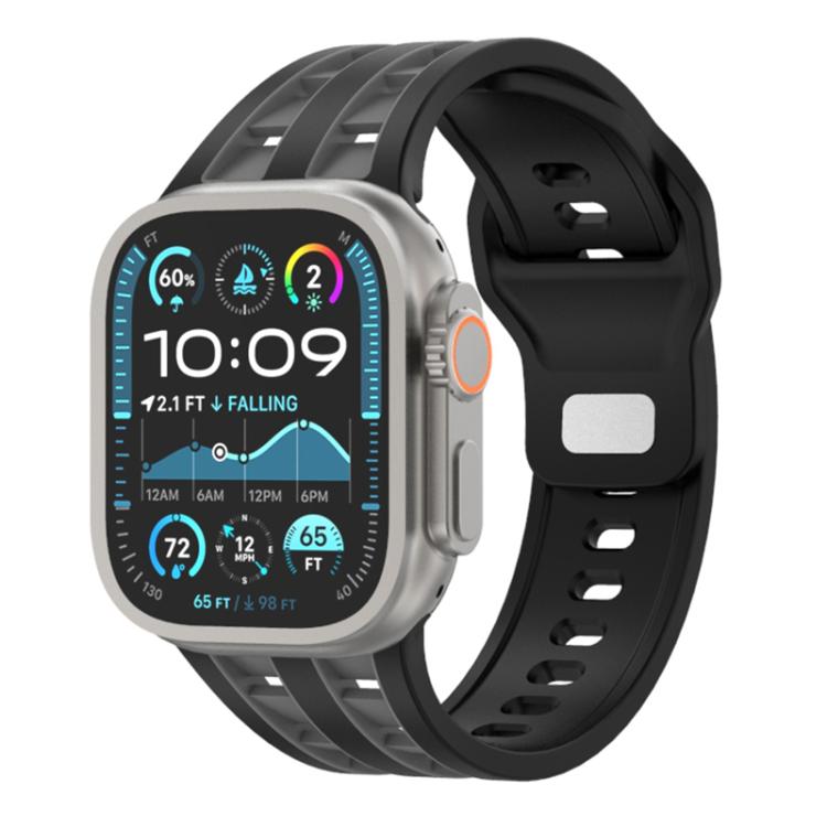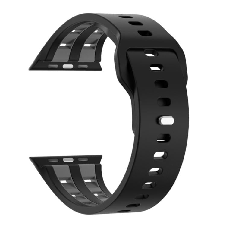 Correa de silicona transpirable de doble fila para Apple Watch de 46 mm, 49 mm, 45 mm y 44 mm (negro y gris)