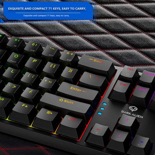 Teclado con Cable Dark Alien K710 71 Teclas Iluminado para Juegos (Verde Azul) Longitud Cable 1,8 M