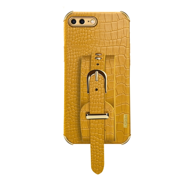 Funda TPU Electrochapada con Patrón Cocodrilo y Correa para iPhone 8 Plus / 7 Plus (Amarillo)