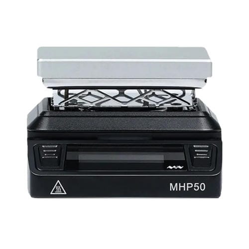 La estación de calefacción Miniware Mhp50 modelo A5 es una plataforma de reparación diseñada para ofrecer un control preciso y eficiente en procesos de desoldado y calentamiento. Compatible con fuentes de Alimentación PD y DC, esta estación integra un mini termostato de alta potencia con capacidad de hasta 150 W, lo que permite un calentamiento rápido y estable en un área de 50 x 50 mm. Su diseño compacto con altura reducida mejora la estabilidad durante su uso, evitando vuelcos accidentales. Dispone de una Pantalla LCD a color que muestra la temperatura en tiempo real y una luz indicadora que cambia de color según el nivel de calor, facilitando la supervisión visual. La estación permite configurar temperaturas y tiempos de calentamiento en secciones, simulando la función de un horno de reflujo para un control inteligente y preciso. Además, incluye funciones de seguridad como la detección de inclinación para detener el calentamiento y un firmware optimizado para una experiencia mejorada. Su Carcasa está fabricada en aleación de aluminio, garantizando durabilidad y disipación térmica eficiente.
