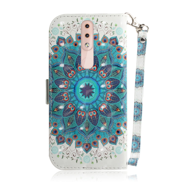 Estuche de Cuero con Tapa Horizontal y Diseño 3D de Corona de Pavo Real para Nokia 4.2 con Soporte y Ranuras