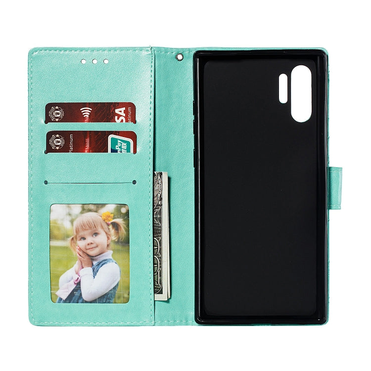 Estuche de Cuero Galaxy Note10+ con Tapa Horizontal, Soporte, Ranuras para Tarjetas, Billetera, Marco de Fotos y Cordón (Verde)