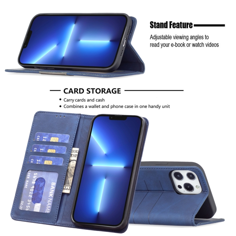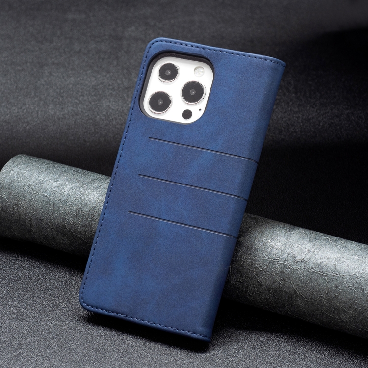 Estuche de Cuero Magnético Empalme para iPhone 13 Pro (Azul)