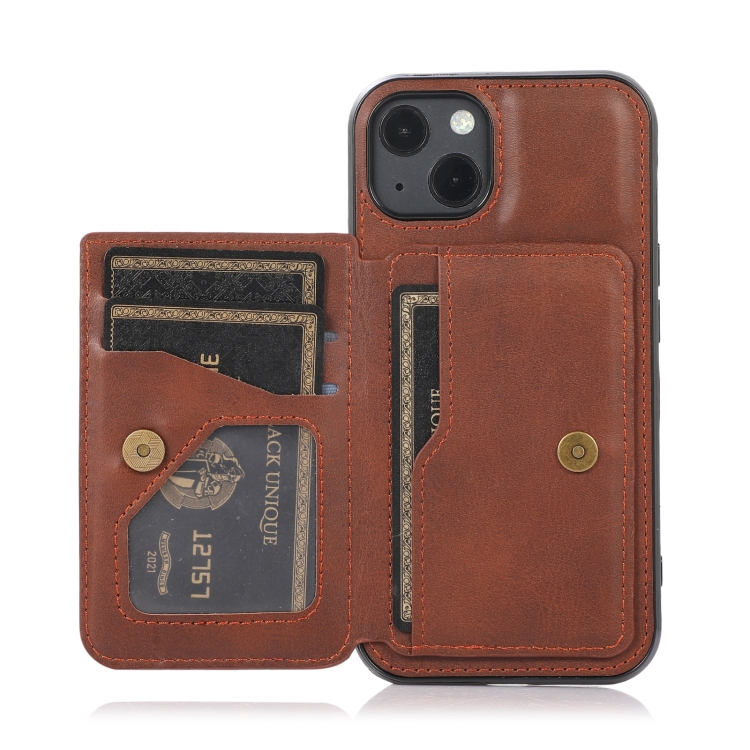 Estuche para Tarjeta Magnética Textura de Becerro iPhone 14 (Café)