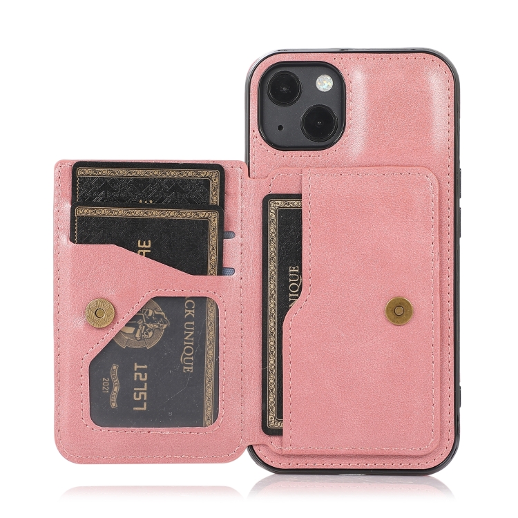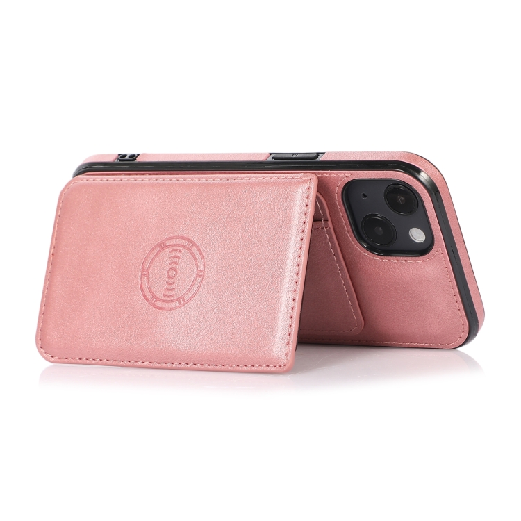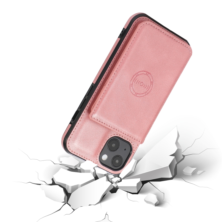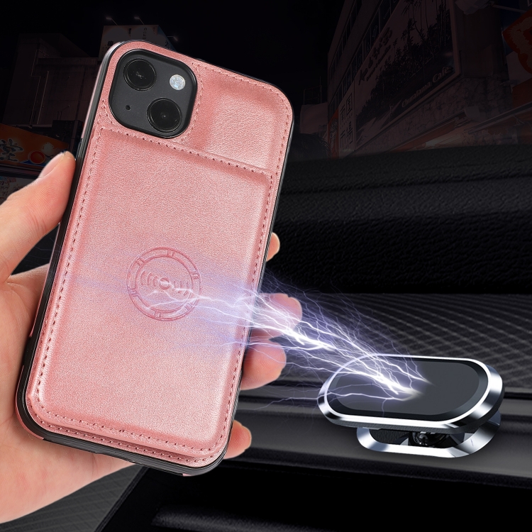 Estuche para Tarjeta Magnética Textura de Becerro iPhone 14 (Oro Rosa)