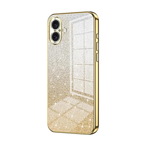 Estuche para teléfono iPhone 16 Plus con baño de oro y purpurina en polvo degradado