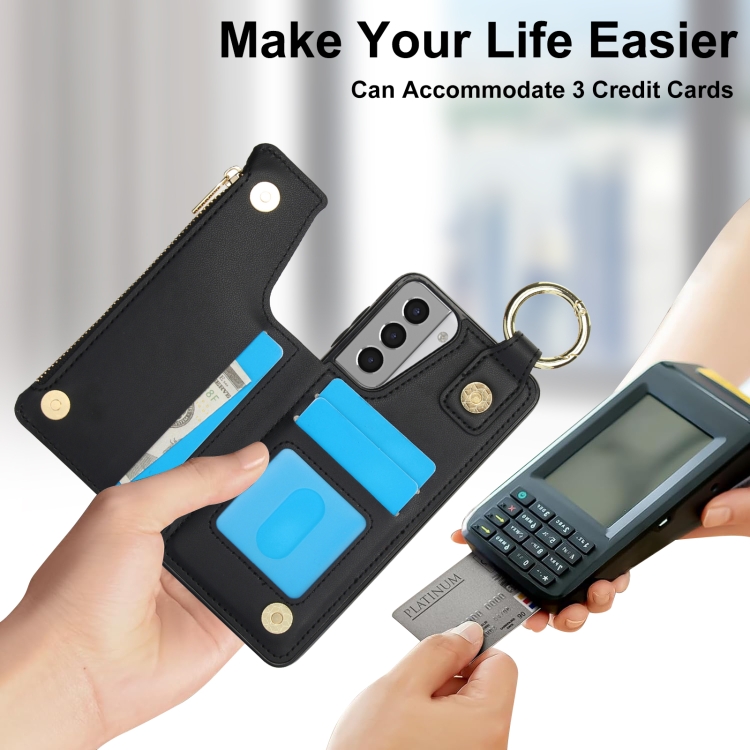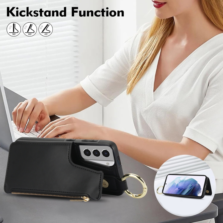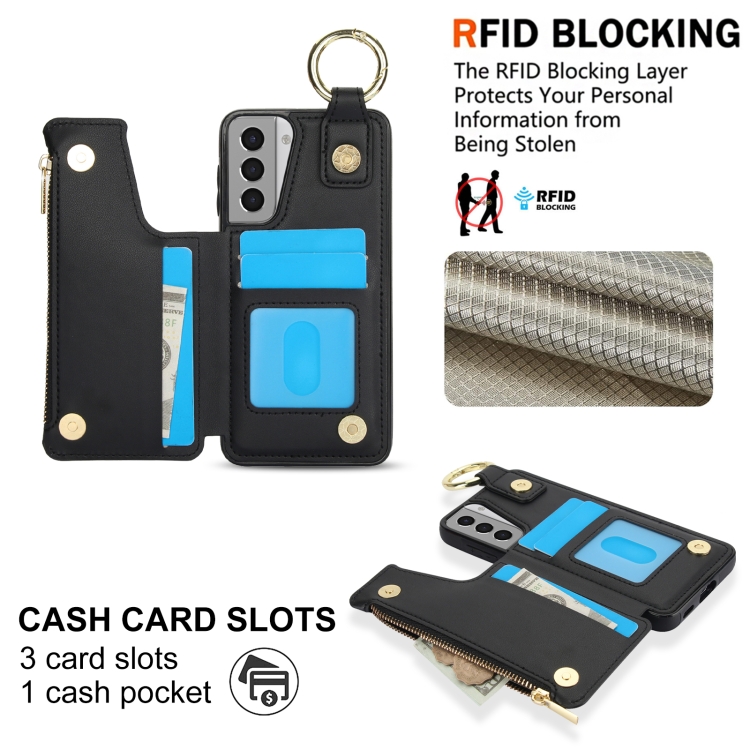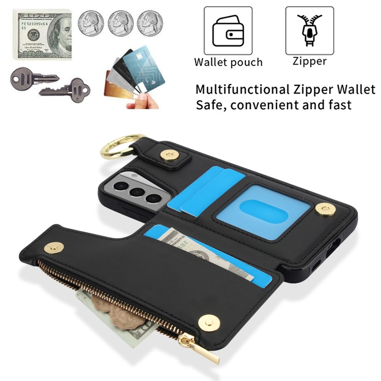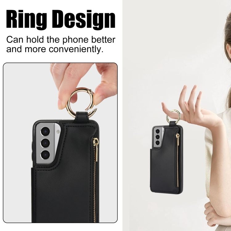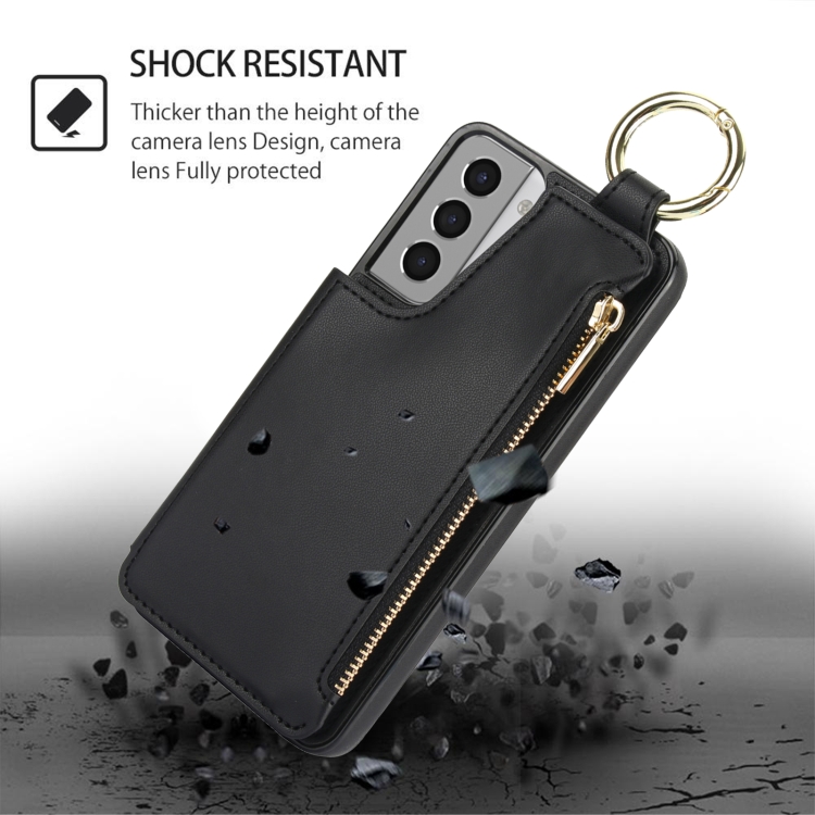 Estuche para Teléfono Samsung Galaxy S21 5G Rfld con Cremallera y Anillo de Doble Hebilla Antirrobo (Negro)
