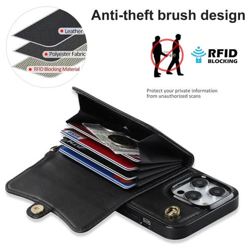 Estuche para Teléfono iPhone 12 Pro Max Ranura para Tarjeta Rfid Cordón Largo (Negro)