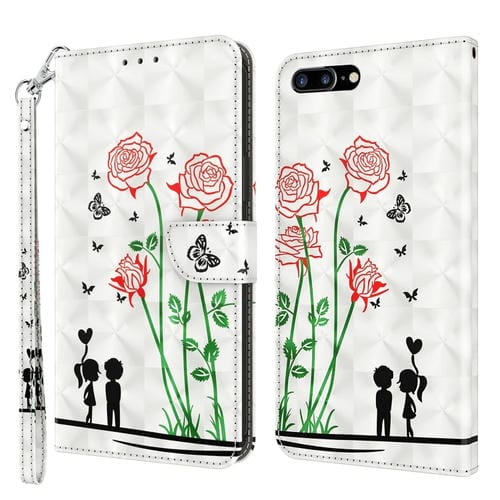 Estuche para teléfono Cuero iPhone 8 Plus y 7 Plus Pintado 3D (Pareja Rosa)
