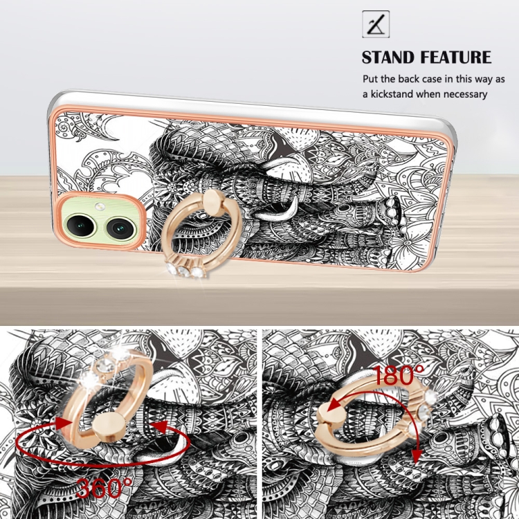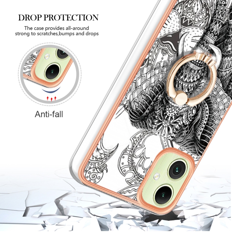 Estuche para Teléfono Samsung Galaxy A06 4G Galvanoplastia Doble Cara Imd Soporte Anillo (Elefante Tótem)