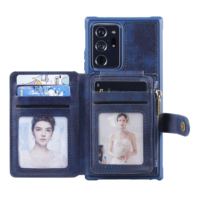 Estuche Protector Samsung Galaxy Note20 Ultra con Cremallera, Ranuras para Tarjetas, Soporte y Función Billetera (Azul)