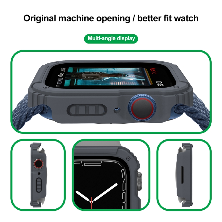 Estuche Protector + Película de Vidrio Templado 2 en 1 + Apple Watch Series 8/7 + 45mm + (Gris Oscuro)