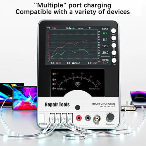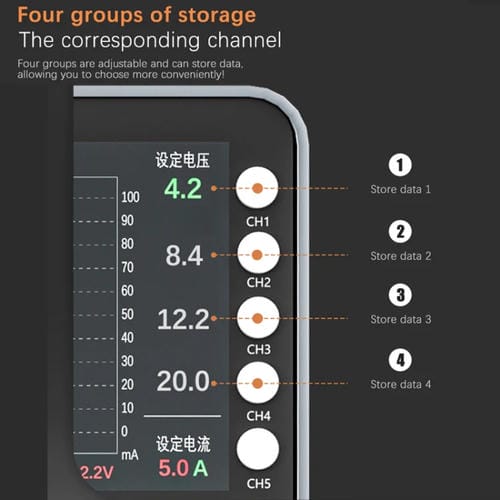 • Potencia de 150 W, voltaje ajustable hasta 30 V, Corriente ajustable hasta 5 A, salida de alta frecuencia, visualización hiperbólica de Corriente y voltaje, incluye funciones de Carga rápida y Carga normal, memoria para almacenar hasta cuatro grupos de configuraciones