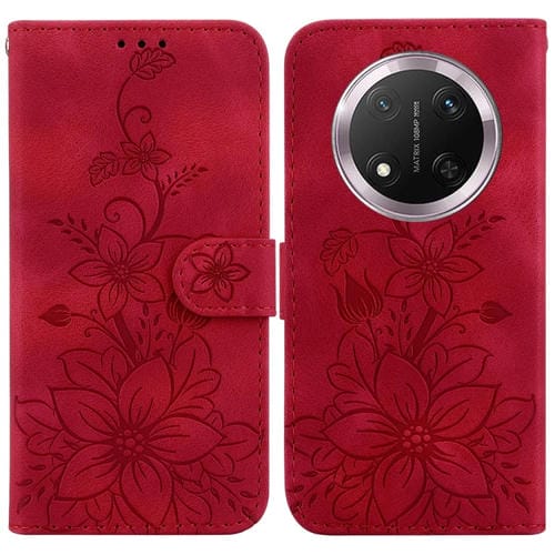 Funda de Teléfono For Honor X9C Lily en Relieve de Cuero (Rojo)