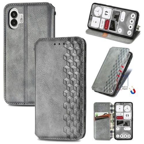 Estuche para Nothing Phone 2 de Cuero Magnético Prensado con Cuadrícula Cúbica (Gris)