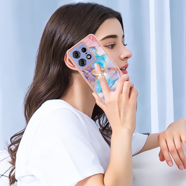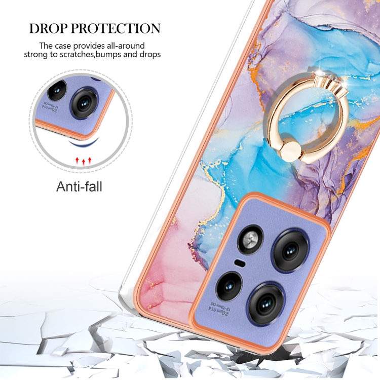 Funda TPU Motorola Edge 50 Pro con Soporte Anillo y Patrón Galvanoplastia (Mármol Azul Vía Láctea)
