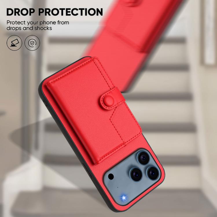 Funda antirrobo RFID con botón y tarjetero para iPhone 17 Pro (roja)