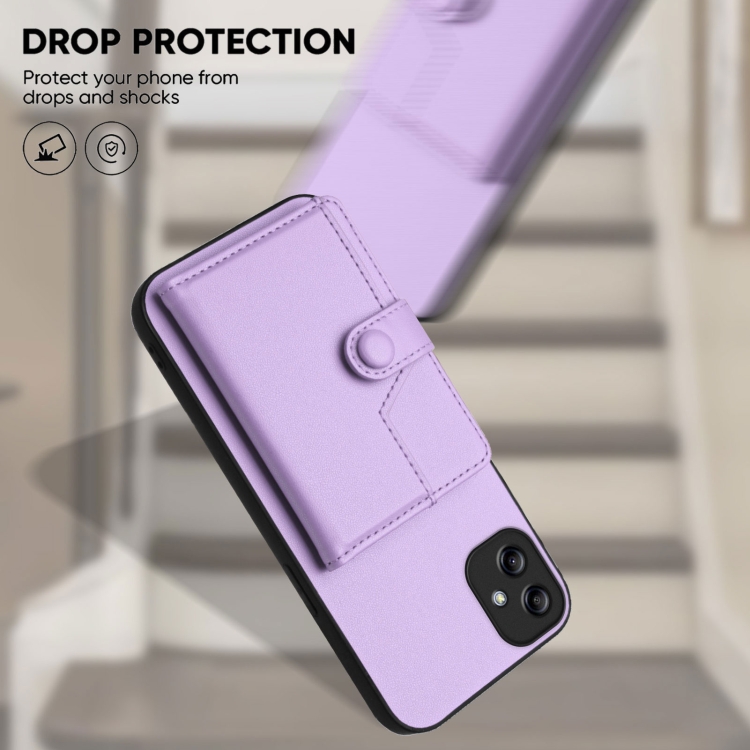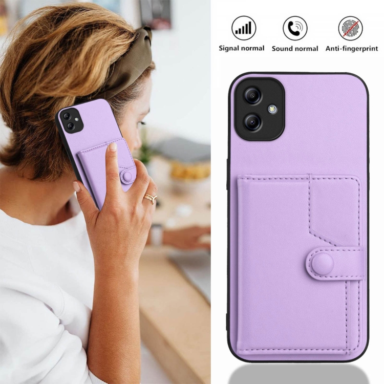 Funda Antirrobo Rfid para Samsung Galaxy A04E con Botón y Tarjetero (Morado)